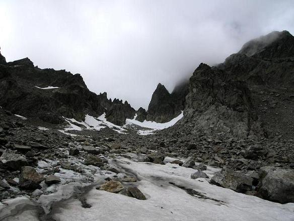 Für den Abstieg über die Ostseite benötigt man meist Steigeisen.