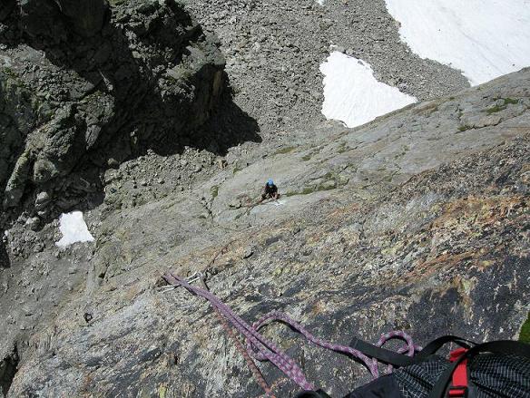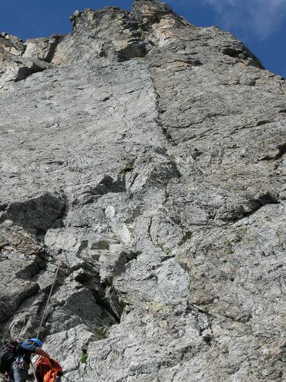 Empfehlenswerter ist der Einstieg von der Südturmlücke direkt der Kante entlang.