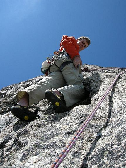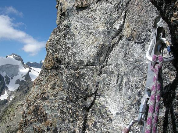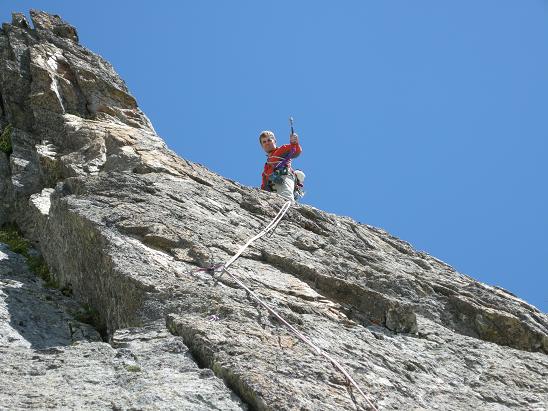 Die ersten zwei Seillängen bieten wunderschöne Kletterei in steilem, gutgriffigem Gneis. Die dritte und vierte Seillänge bis auf den Turm sind weniger steil, bieten aber wunderschöne Strukturen.