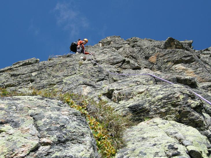 Die obere, eigentliche Kante ist eine pure Genusskletterei in gutem Fels, die über 4 Seillängen zum Gipfel führt.