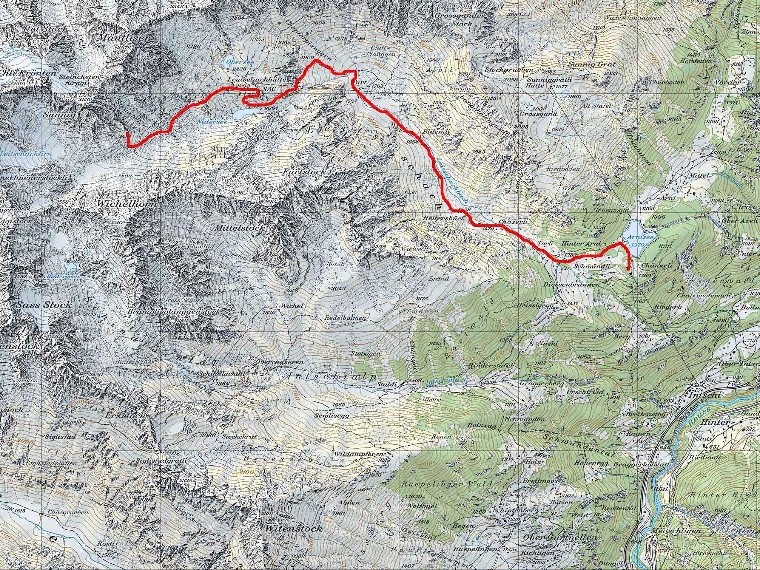 Von der Seilbahnbergstation Arnisse via Leutschachhütte wandern (1.5h) Von da Richtung Saaspass bis zur Höhe